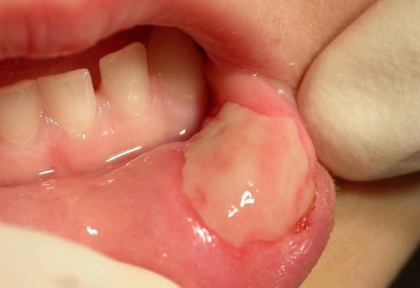 Lors des soins, une anesthésie locale est réalisée, ce qui entraine une diffusion du produit anesthésiant dans la dent, mais également dans les tissus mous tels que la joue et les lèvres, avec un effet qui perdure après la fin des soins. Les enfants, ayant une sensibilité altérée, peuvent se mordre très fortement ce qui entraine un gonflement assez rapide.